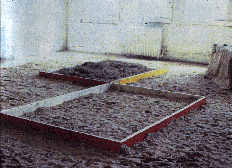 (sandbox first constructed by Helio Oiticica, "Area Bolide I," Brazil, 1965)