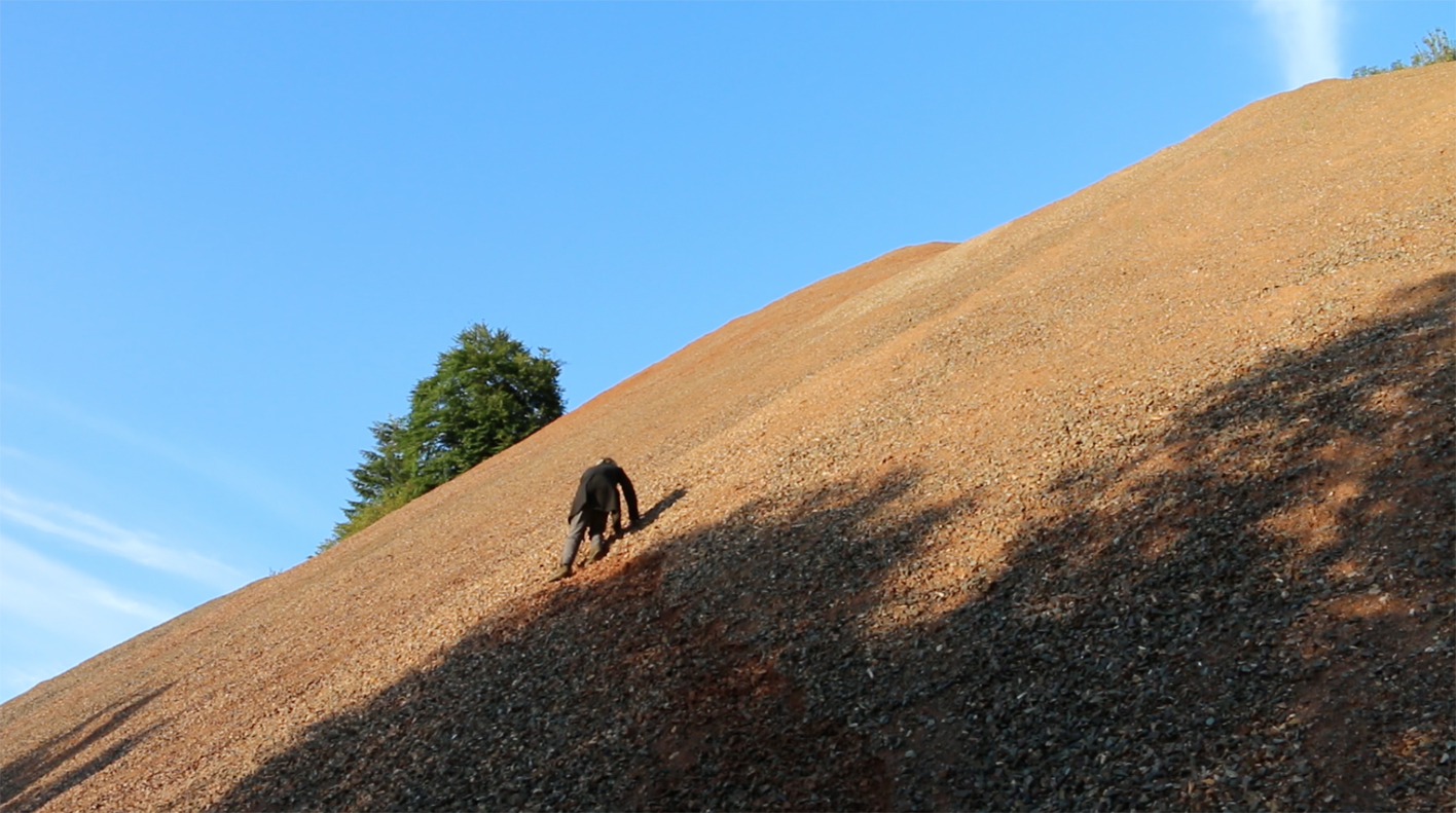 A near-silent film (with a soundtrack of breath and stones moving) portrays