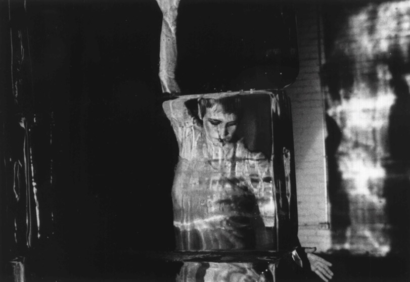 The installation is performed in 4 different physical spaces through which the audience moves. The movement is like a dance. The audience encounters movement scenarios in film, sculpture, remote digital movies, sonic landscapes. The fictional content of the scenarios requires time shifts (from past to future, future to present).